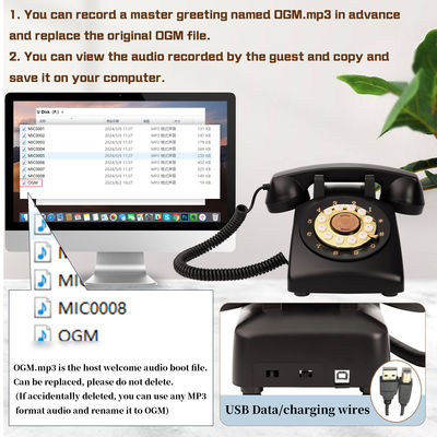 Telefon Konuk Kitabı kullanımı ve uyarlanması kolaydır. Kullanıcıların ses dosyasını çalıştırmalarını ve kayıtları diğer cihazlara aktarmalarını sağlayan bir bilgisayara bağlanabilen bir USB arayüzüne sahiptir.Açık ses kalitesi, her mesajın kristal gibi ayrıntılı bir şekilde kaydedilmesini sağlar.Batarya ömrü 10 saatlik sürekli kullanım ile, bu cihaz şarj gerekmeden uzun süre kullanılabilir.