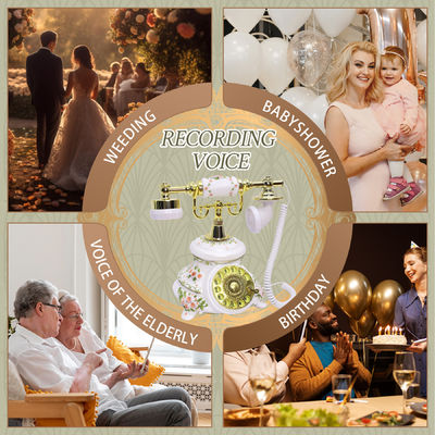 Bu telefon misafir defteri sesli misafir defteri düğün telefonu için mükemmeldir.Düğün duşlarıUSB arayüzü ile ses dosyalarını çalıştırmak için kolayca bir bilgisayara bağlanabilir. Düğme tasarımı tüm misafirler için kullanımı kolaylaştırır.